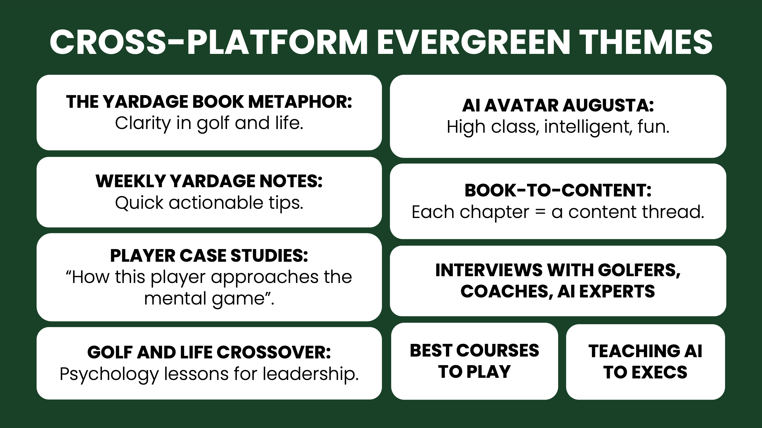 Thomas Davis, owner of The Yardage Book Golf, reached out and asked me to help him create a game plan for a new golfing influencer brand, The Yardage Book Golf that needed a clear-cut strategy on how to approach their content and scale their business.